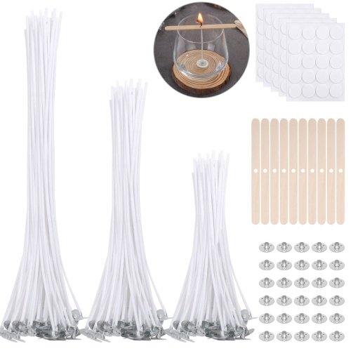 Details: VEVOQIM 100 pcs Candle Wicks for Making Candle(4/6/8inch) with 10 pcs Candle Wick Holders,100 pcs Candle Wick Stickers & 30 pcs Wick Tabs,Long Lasting Pre-Waxed & No Black Smoke for DIY Candles Crafts
