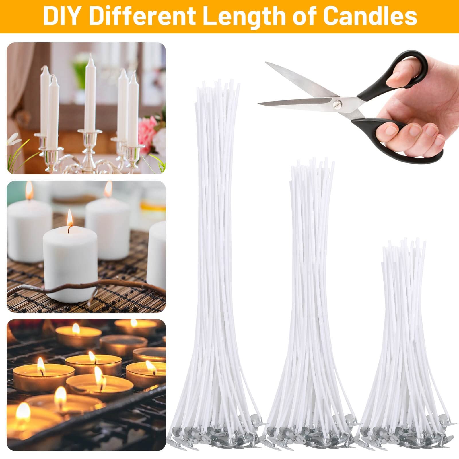 VEVOQIM 240pcs Candle Wicks Set,100pcs Candle Wicks for Making Candle (10/15/20cm) with 100pcs Glue stickers,10pcs Candle Wick Holders & 30pcs Wick Tabs,Long Lasting & No Black Smoke for DIY Candles