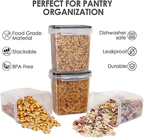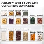 - Value Pack: Our food storage containers come in 3 different sizes. Includes 4 Tall Containers(2 liters), 8 Large Containers(1.4 liters) and 4 Small Containers(0.8 liters). Perfect for storing spaghetti, baking supplies, cereal, flour, sugar, oats, pasta, coffee, tea, snacks, nuts and other dry goods.