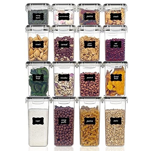 Vtopmart Set of 16 Airtight Food Storage Containers, Kitchen and Pantry Organisation, BPA-Free Plastic Container for Flour, Sugar and Spaghetti, with 24 Labels (Black)
