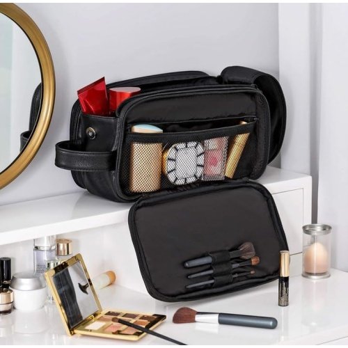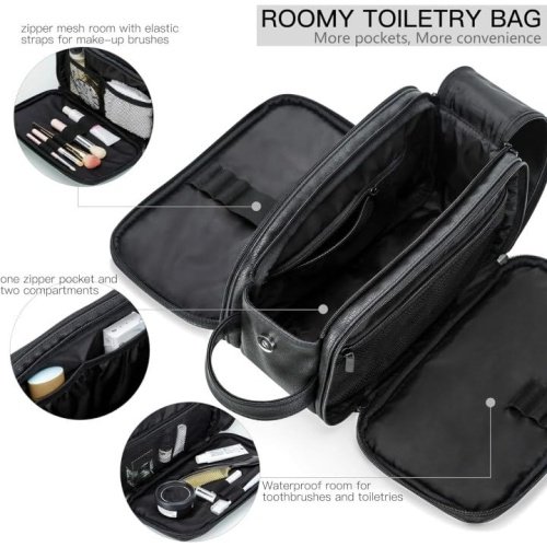 - Design: Unique design allows you to get a toiletry bag, shaving kit, and makeup bag/cosmetic bag all in one. And the High capacity compartment easy to carry your toiletries, whole bottle of conditioner, shampoo, and shower gel