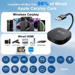 - 2024 Upgrade CarPlay Wireless HDMI Adapter for iPhone : This wireless HDMI adapter supports your car’s original wired CarPlay to wireless. You can use the full carplay function and retain the original car operation, while also turning your car into an entertainment center, playing shows, movies and games on your car screen. Enhance your travel experience with our compatible HDMI TV converter