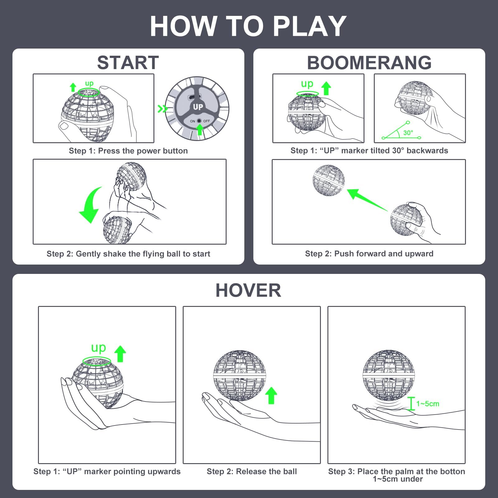 - [Indoor & Outdoor Use] Whether you kids want to play it on their own or the whole family wants to play, it can be easily controlled in any environment. The smooth flight pattern and the boomerang effect is perfect for backyard, garden, park, school, or office, indoor play. Put your magic ball in your pocket and have fun anytime, anywhere.